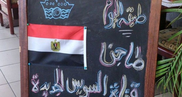 أذهبُ مع صديقتي لتناول الغداء، كأي يومٍ عادي في محل أسماكٍ شهير، تُفاجِئُنا لافتةُ المطعم «عرض خاص.. طاجن قناة السويس». نسألُ النادلَ عن العرض، فيقول إن صاحب المحل قرَّرَ تغيير اسم طبق المأكولات البحرية المتنوعة ليأخذ اسم القناة الجديدة فخراً واحتفالاً.