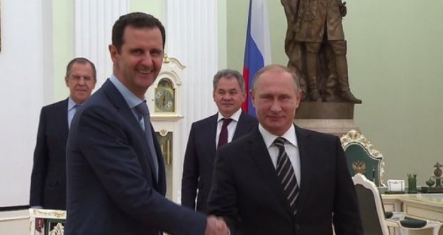 بعد ما يزيد عن أربع سنوات من تشبثه بالمكان خرج رأس النظام بشار الأسد أمس في زيارة خاطفة إلى العاصمة الروسية موسكو ليعود في ذات الليلة كما أكدت مصادره … وحسب المتحدث باسم الكرملين ديمتري بيسكوف أعرب بوتين، خلال اللقاء الذي بثته قنوات التلفزيون الروسية، عن استعداده للمساعدة في العمليتين العسكرية والسياسية في سوريا، مؤكداً أنه سيتواصل عن كثب مع قوى عالمية بشأن حل سلمي في سوريا. ومن جهته، أعرب الأسد عن بالغ امتنانه لبوتين لما تقدمه روسيا من مساعدات، مشيراً إلى أن الدعم الروسي حال دون حدوث سيناريو مأساوي في سوريا. وبخصوص الحل السياسي أضاف الأسد أن الهدف من أي مشاركة عسكرية هو الحل السياسي وإن الشعب السوري بأكمله يريد المشاركة في تقرير مستقبل البلاد.