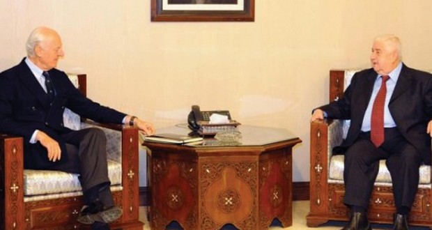 دمشق| لقاء غريب التوقيت جمع المعلم وديمستورا