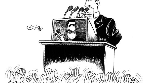 كبعض قطاع الطرق الطموحين، يصل إلى السلطة في لحظة متخيلة هذا البطل، الديكتاتور، المهرج. يبتاع الكذب، لكي يقتل الأصالة التي لا ينتمي لها، ليبرر وجوده المارق. لديه لصوصٌ صغار ولصوصٌ كبار، إنهم خط دفاعه الثالث عن نفسه. ومعاونوه والمقربون منه من قطاع الطرق الأقل طموحاً يكونون خط دفاعه الثاني، وأجزم أن لديه جهازاً أمنياً/استخباراتياً من اللصوص الصغار والمستفيدين، والخائفين، وهم خط دفاعه الأول.