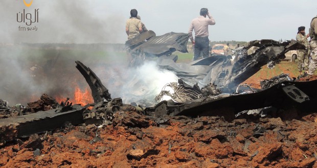 شاهد| حطام “السوخوي” المُسقطة بريف حلب الجنوبي