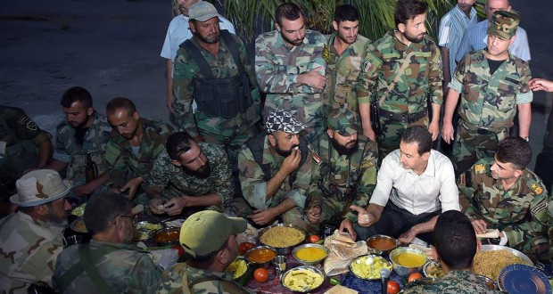 وقد ظهرت الصور تباعً لبشار وهو بين الدشم، مظهرة ً (إلمامه بالمصطلحات العسكرية) التي أكثر منها في كل جملة، وكذلك المرافق الإيراني المدجج بالسلاح والسواد من خلفه، ومع سؤاله عن أحوال الجنود التي يعلم السوريون جيداً أنها منسقة على طريقة “الكومبارس”.