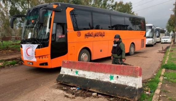 انطلقت الدفعة الرابعة من مهجري حي الوعر في حمص، اليوم، باتجاه مدينة جرابلس بريف حلب، تطبيقاً للاتفاق بين لجنة الحي والنظام، والقاضي بخروج مقاتلي الحي وعائلاتهم، نحو مناطق يختارونها.