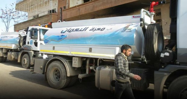 يعتمد المجلس المحلي في معرة النعمان على صهاريج الماء لتأمين مياه الشرب للأهالي بعد تعرض المحطة الرئيسية في 16 كانون الثاني 2018 لغارة جوية أدت لتضرر المولدات، وتوقف غطاسات المياه، ما أسفر عن توقف الضخ على شبكة المياه تماماً، وخروجها عن العمل.