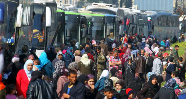 تستعدُّ قوافل المُهجّرين من مدينة دوما في غوطة دمشق الشرقية للخروج من المدينة نحو جرابلس التابعة لمحافظة حلب، عقب اتّفاقٍ أبرمه فصيل “جيش الإسلام” مع روسيا.